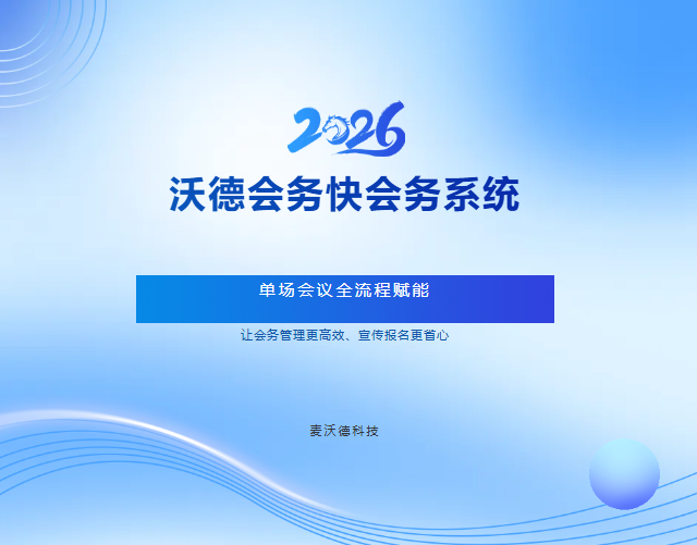 在数字化浪潮席卷各行各业的今天,一场成功的单场会议,早已不再是简单的场地布置与人员召集,更需要高效的宣传触达、规范的流程管理、便捷的报名通道,以及精准的数据支撑。沃德会务深耕会务服务领域,依托专业技术实力搭建快会务系统,专为单场会议量身打造全流程解决方案,从宣传引流、报名审核到现场管理、数据复盘,一站式搞定所有会务难题,让主办方告别繁琐事务,聚焦会议核心价值。
